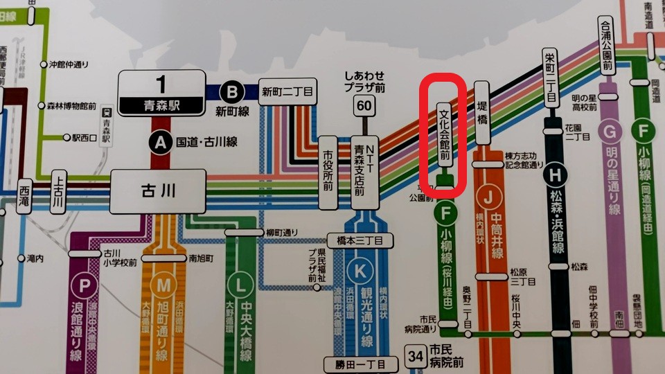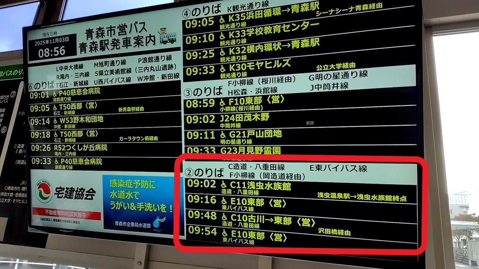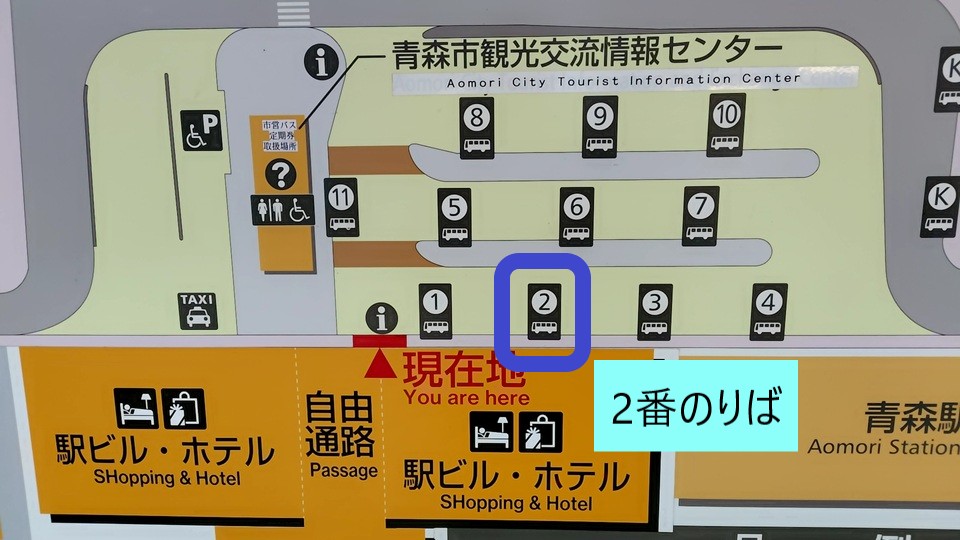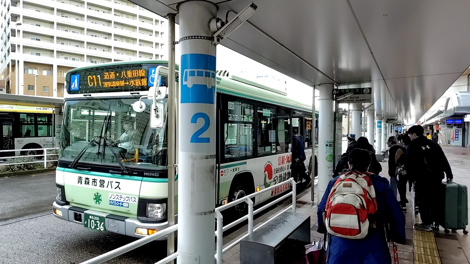 次に、青森駅東口のバスターミナルからまで路線バスを利用し、会場に向かいます。会場最寄りのバス停は「文化会館前」で、2番のりばから出る青森市営バスに乗車します。