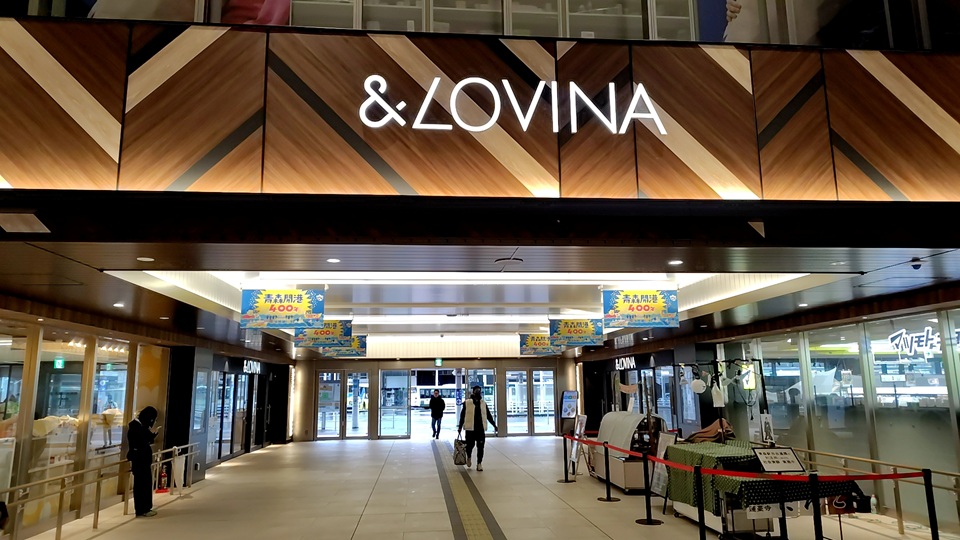 下りた先の駅ビルの商業施設「ラビナ(&LOVINA)」の中を通り外に出ます。