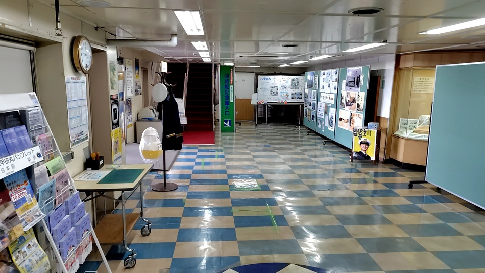 1964(昭和39)年から約24年間、実際に青森~函館間を往復していた船を利用しており、当時の状態で保存されていた船内を展示とともに見学することができます。1階の車両甲板には、郵便車両などの鉄道車両が9両展示されています。