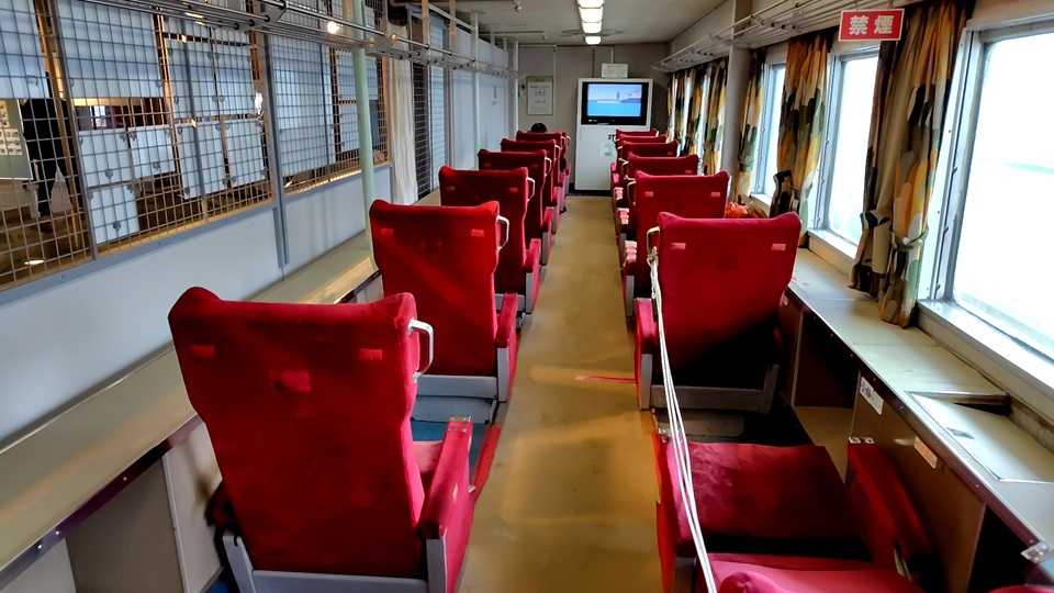 3階の遊歩甲板内では、実際に使用されていたグリーン船室跡の乗客用椅子に座りながら、ビデオシアターを楽しめます。