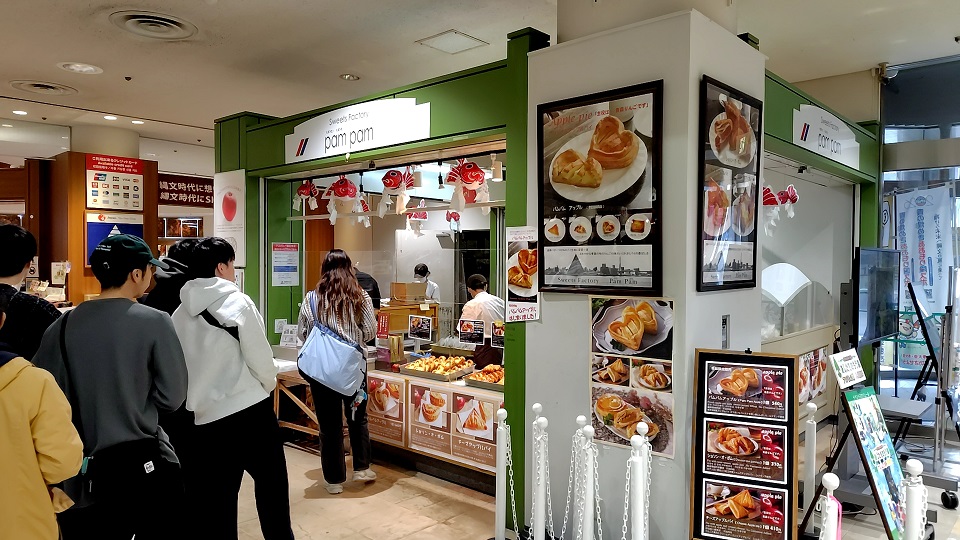 1階にある「スイーツファクトリー パムパム」は、毎日店内で焼き上げているオリジナルアップルパイの人気店です。