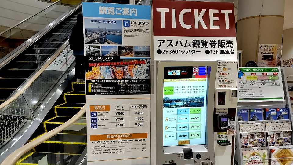 2階では国内最大級の3Dシアターで、青森県の魅力を楽しめます。同じく13階の展望台とのセット券も売っています。