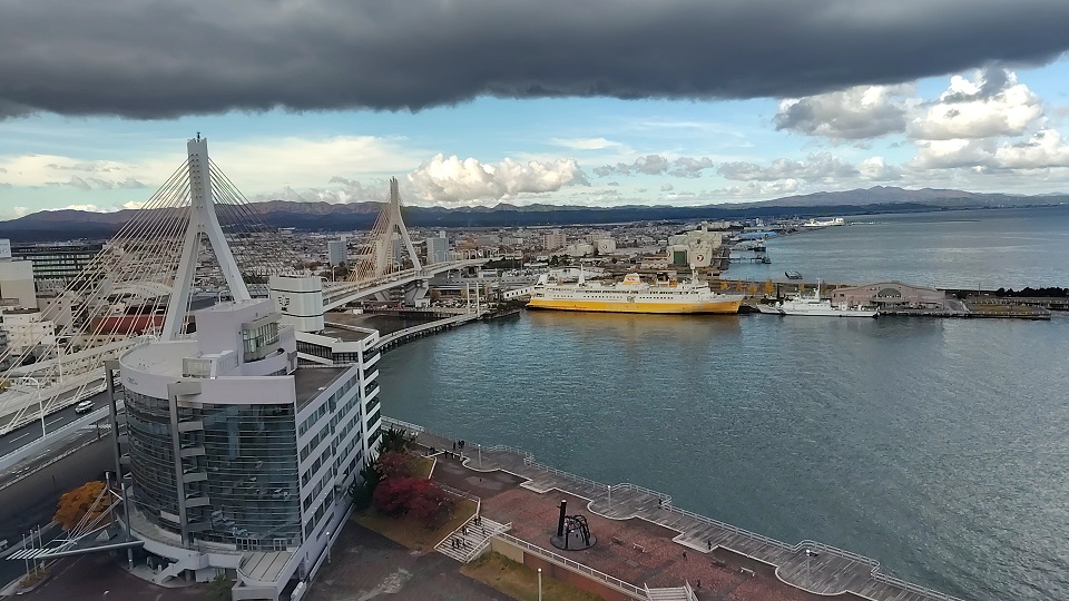 青森駅前の八甲田丸や駅前ビーチの様子もパノラマで見えます。