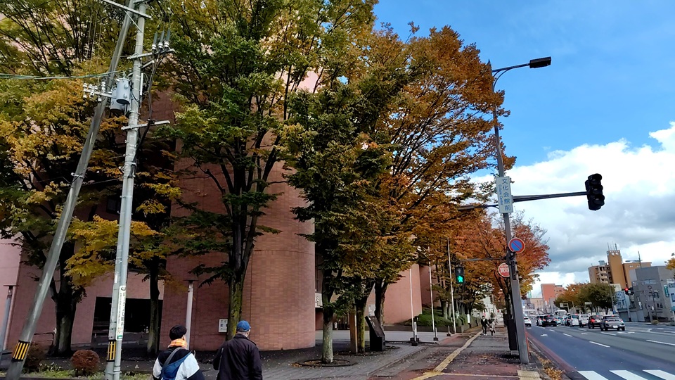 すぐ先の「文化会館前」交差点を渡れば、会場の茶色い建物が見えます。