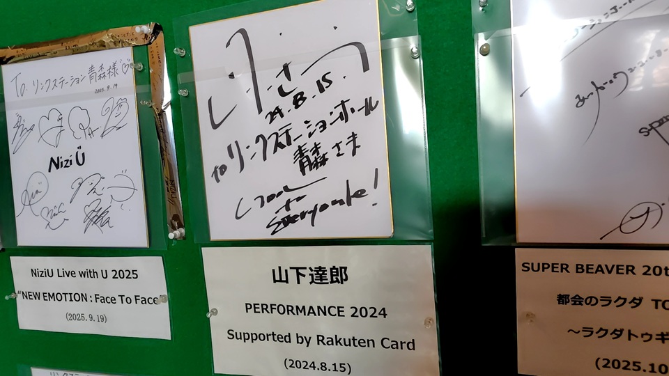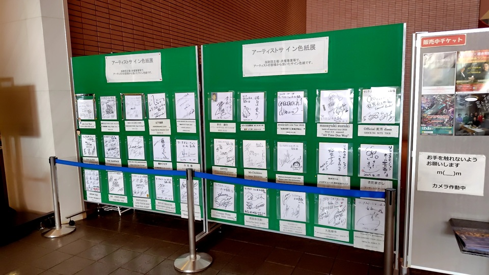 期間限定かもしれませんが、公演アーティストのサイン色紙が展示されていました。
