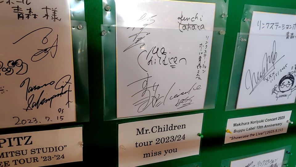 アリーナ常連のミスチルのサインも。両脇はスピッツと槇原敬之氏です。