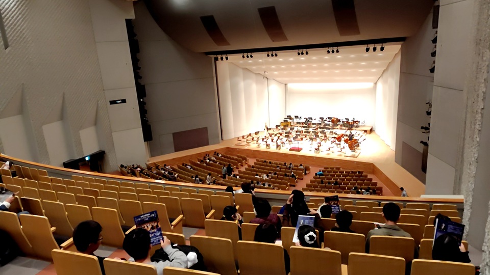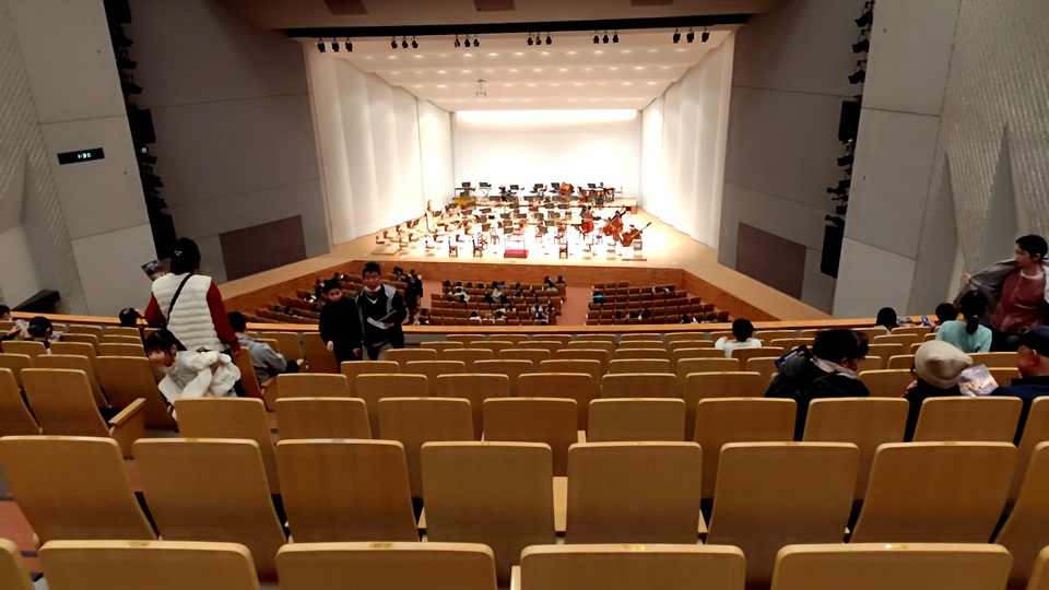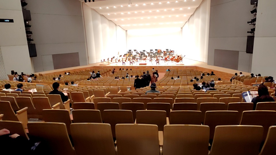 大ホールの総客席数は2,031席で、階下席(1階席)と階上席(2階席)に分かれています。階下席は建物の1階と2階部分にあたり、中央通路付近の1階出入口、最後列後方の2階出入口から入退場します。