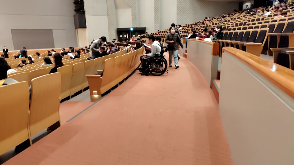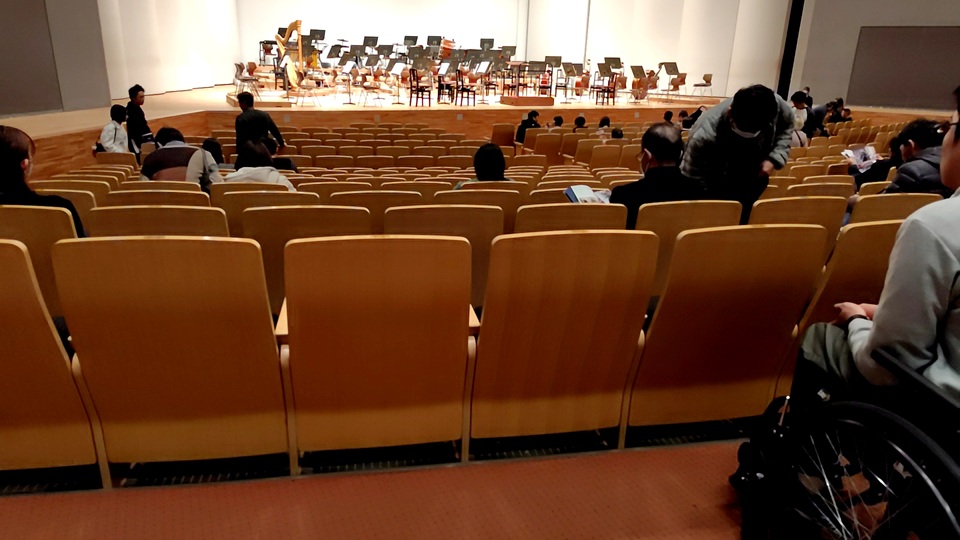 車いすスペースは座席表上は明記されていませんが、この日はそ列後方の通路に設置されていました。