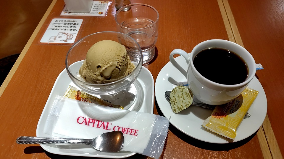 ブレンドコーヒー(夢のかけ橋ブレンド)とアイスクリームをセットにしていただきました。