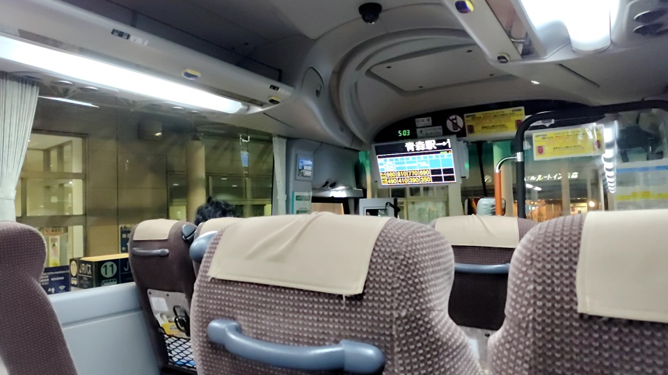 青森空港に着いたら、青森市内方面の空港バスに乗り換えます。終点の青森駅までの運賃は片道980円で、現金のほか各種交通系ICカードが利用可能です。