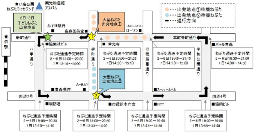 出典:青森ねぶた祭公式サイトより 2025年の運行ルート