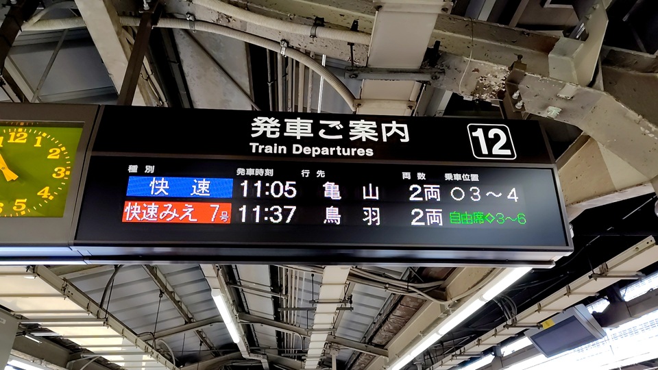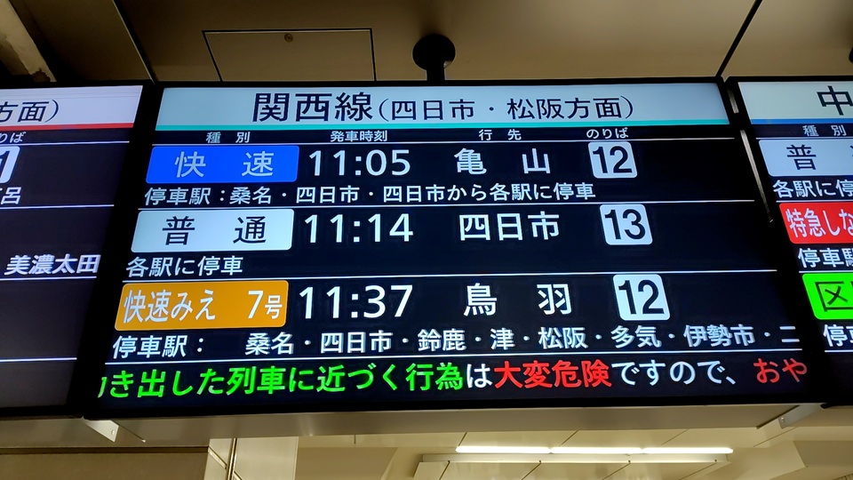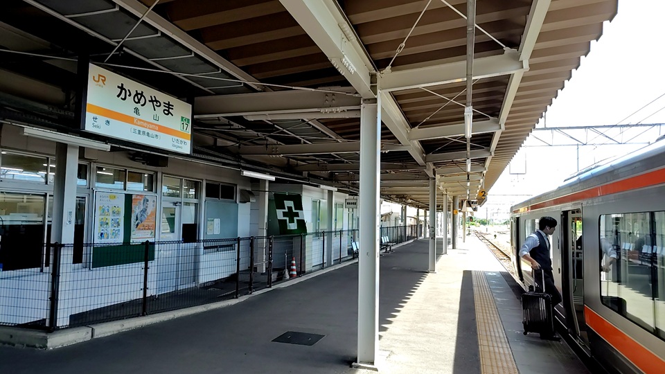 快速の場合、名古屋駅から8駅・約65分で亀山駅に到着しました。