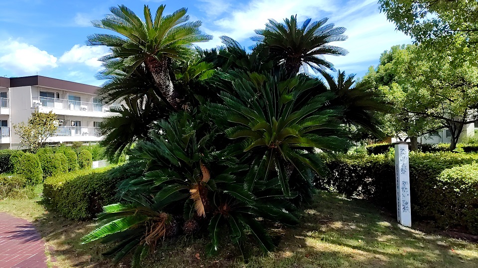 玄関前には、元は東海道亀山宿の旅籠「伊勢屋」の庭にあった樹齢500年を超える「ソテツ」が移植されています。