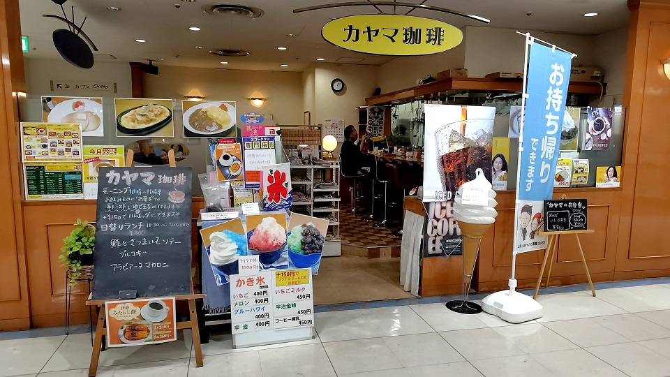 エコータウンの2階ににある喫茶店「カヤマ珈琲」です。会場内のカフェコーナー以外では一番近い喫茶店になるので、時間調整に重宝します。