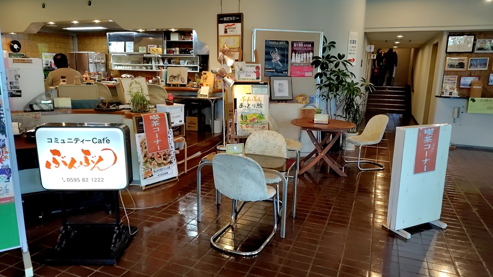 会場1階には、喫茶コーナー「コミュニティCafe’ぶんぶん」があります。単なるカフェコーナーではなく、歴史講座やレコード・美術品鑑賞などの様々な催しが行われ、地元の人たちの交流の場として定着しています。