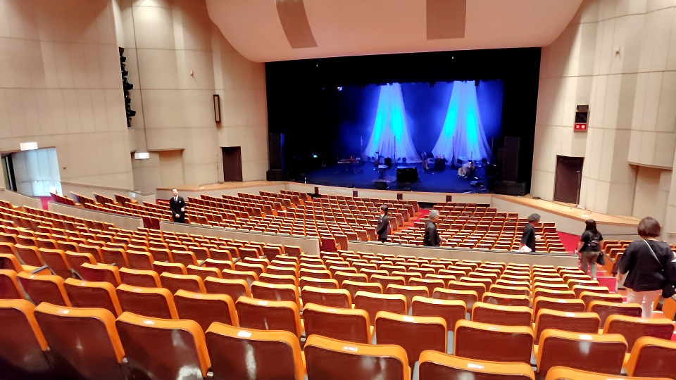 大ホールの総客席数は947席で、シンプルなワンフロアの構造です。座席は1列から23列まであり、途中12列と13列の間に中央通路が設置されています。