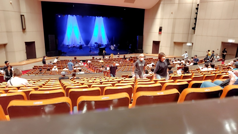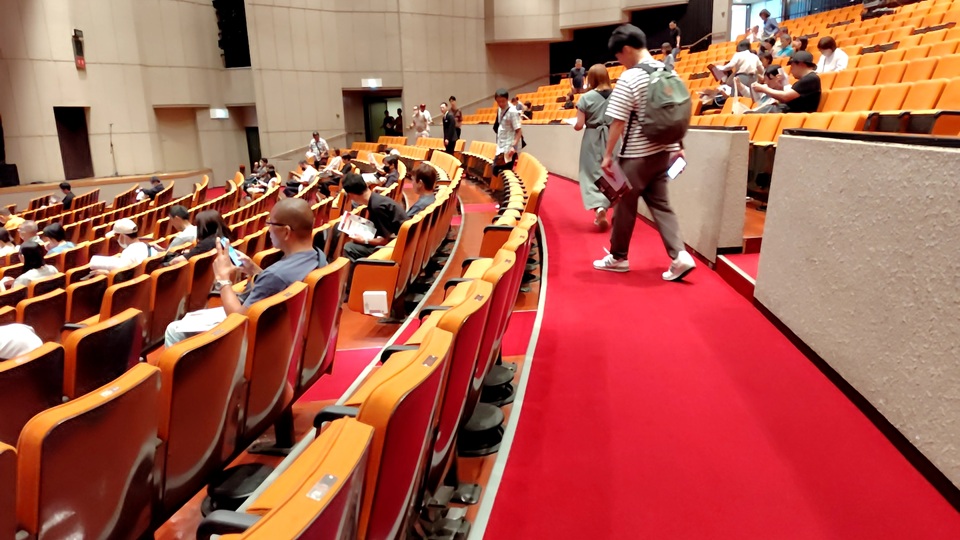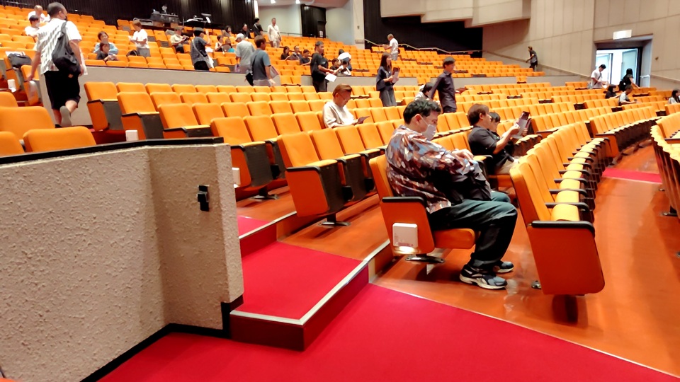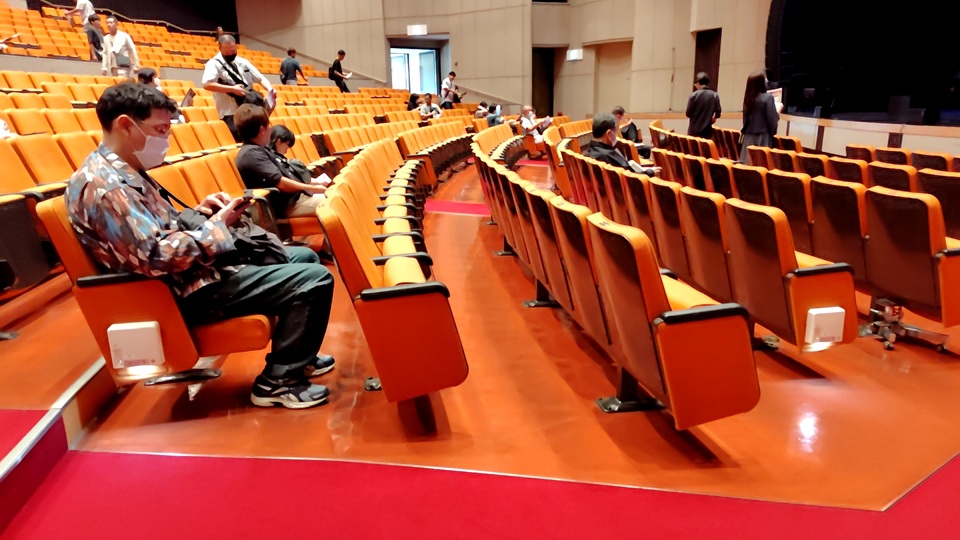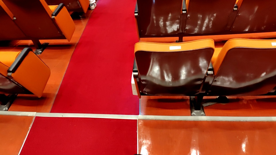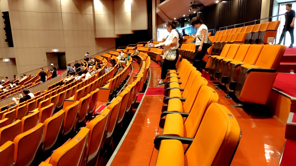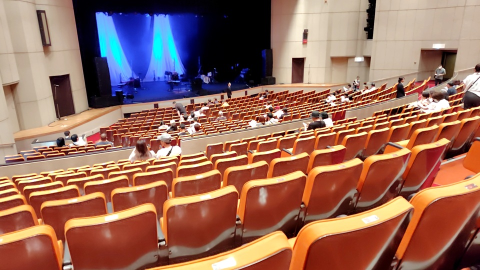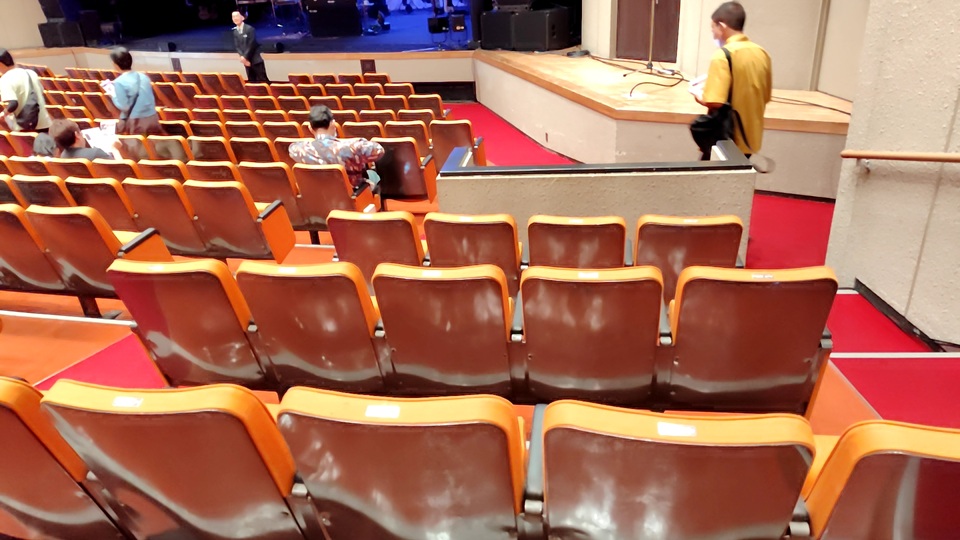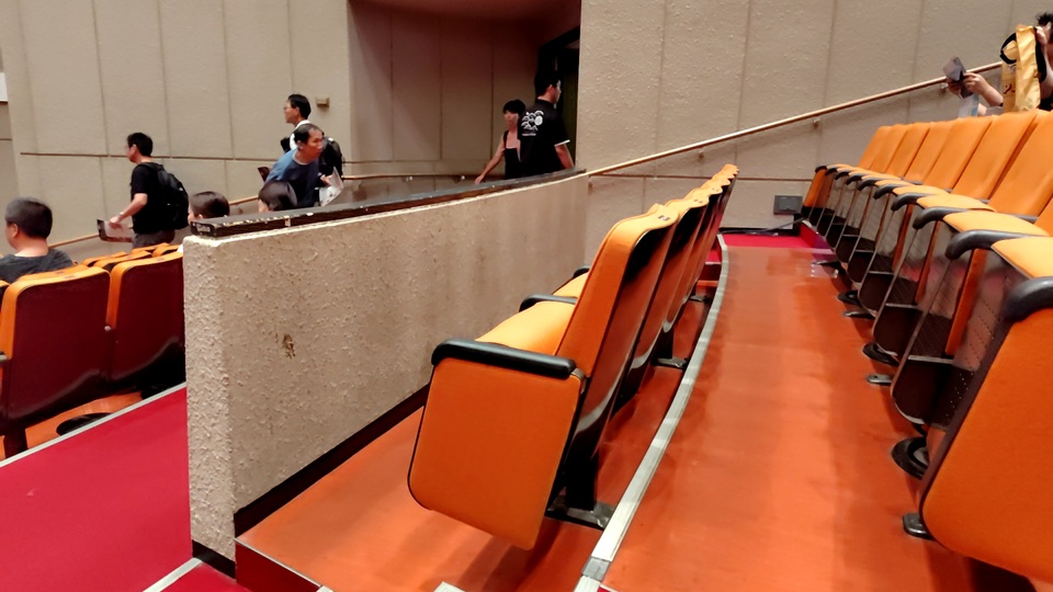 通路後方は段差が2段分になっており、前方に比べ傾斜が強めになっています。ワンフロアですがそれなりに高さがあり、ステージを見下ろす感じのアングルになります。