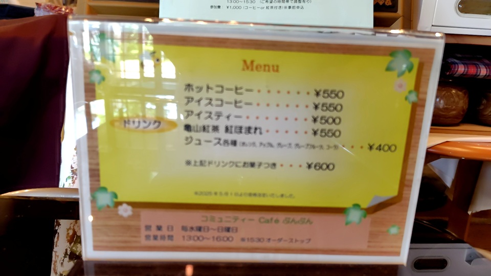 店内ではコーヒー等のドリンクのほか、地元亀山の紅茶「紅ほまれ」や、B級グルメ「みそ焼うどん」なども注文することができます。
