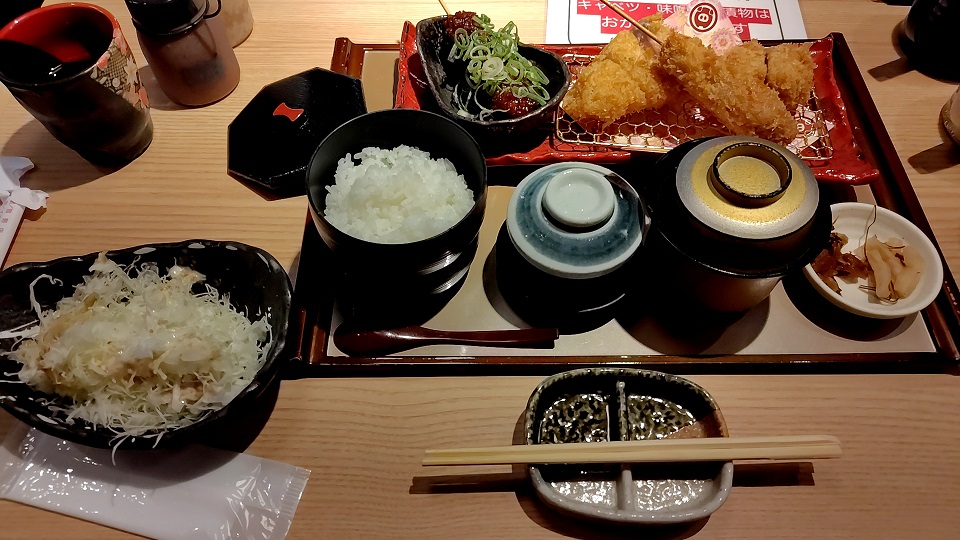 この日は串カツやロース・ヒレカツに茶碗蒸し等もがセットになった「みそ家御膳」(¥1,960)を注文。ソースや塩などタレの種類も豊富です。