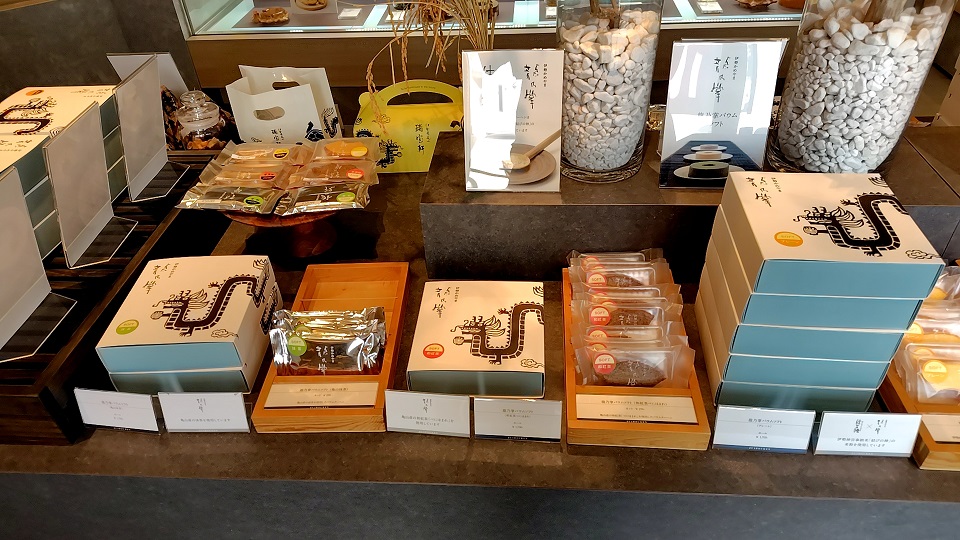 創業当初からの銘菓で皇室への献上菓子としても知られる「亀乃尾」をはじめ、最近では洋菓子にも力を入れており、伊勢抹茶や和紅茶「べにほまれ」、伊勢神宮の奉納米「結びの神」の米粉などを使ったグルテンフリーのバウムクーヘン「龍の掌」が有名です。