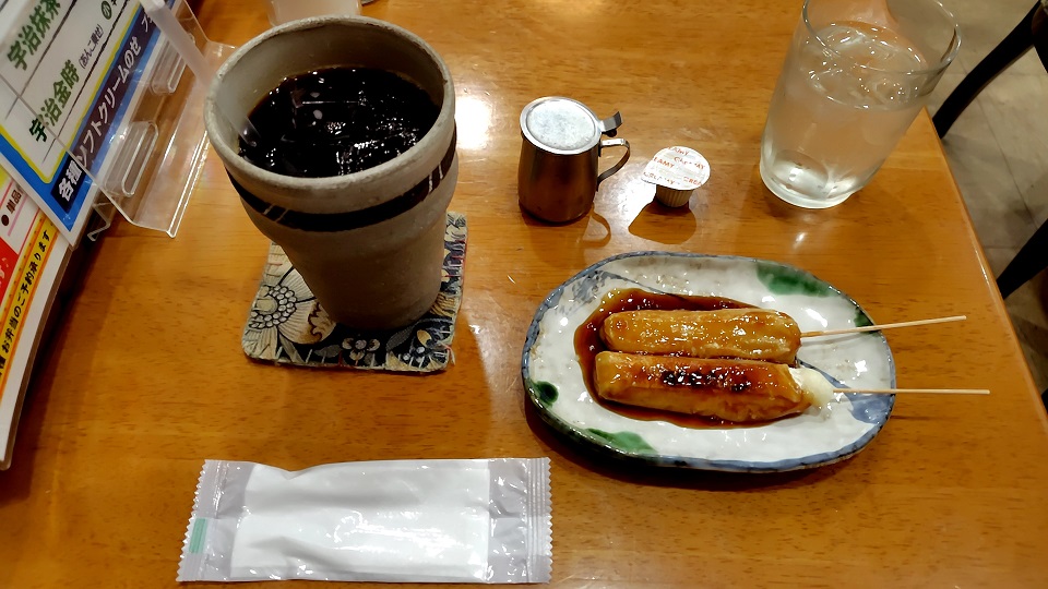地元の伊勢「みたらし餅」(2本)とアイスコーヒーのセットをいただきました。
