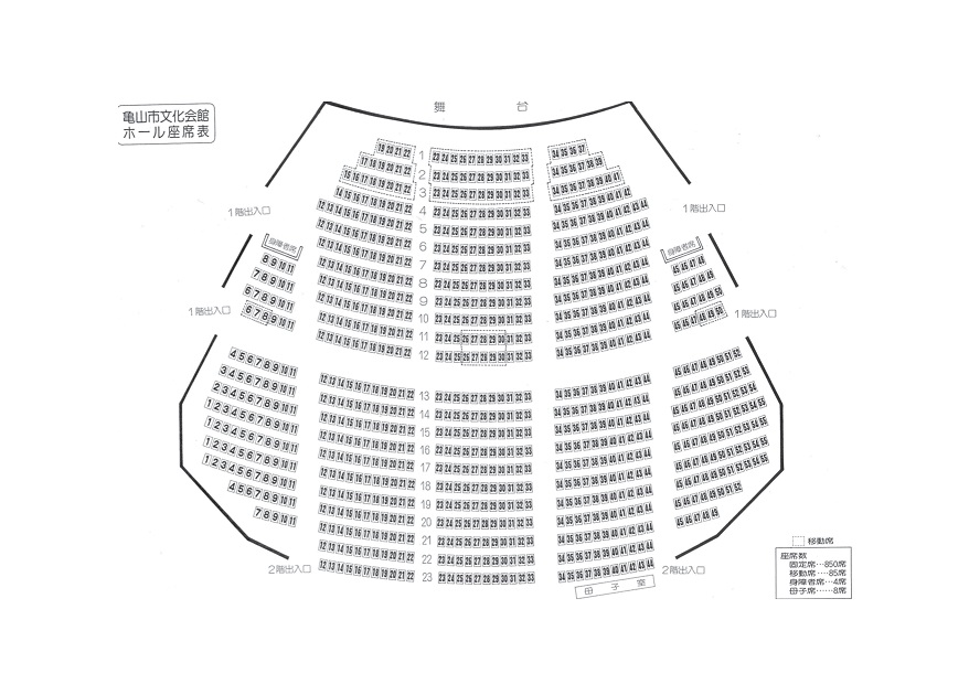 座席の傾斜は、7列まではスロープによる緩やかな傾斜で、8列から12列までは段差が付いています。
