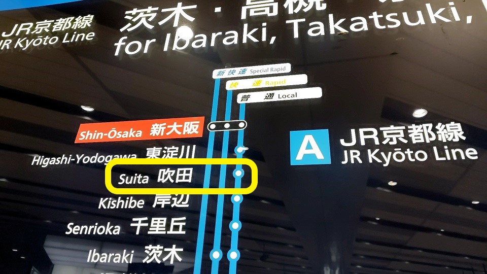 続いて、JR京都線の吹田駅を利用するルートの紹介です。会場までは阪急線の吹田駅の方が近いのですが、新大阪駅からの場合、JR線の吹田駅までわずか2駅なので、徒歩移動が気にならない人や天気のいい日は、こちらからのアクセスの方がシンプルだと思います。