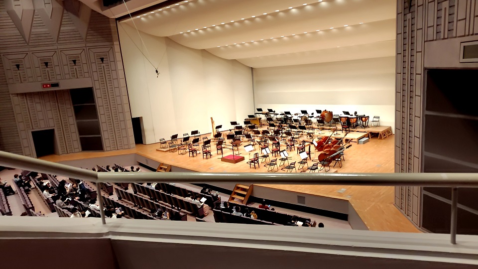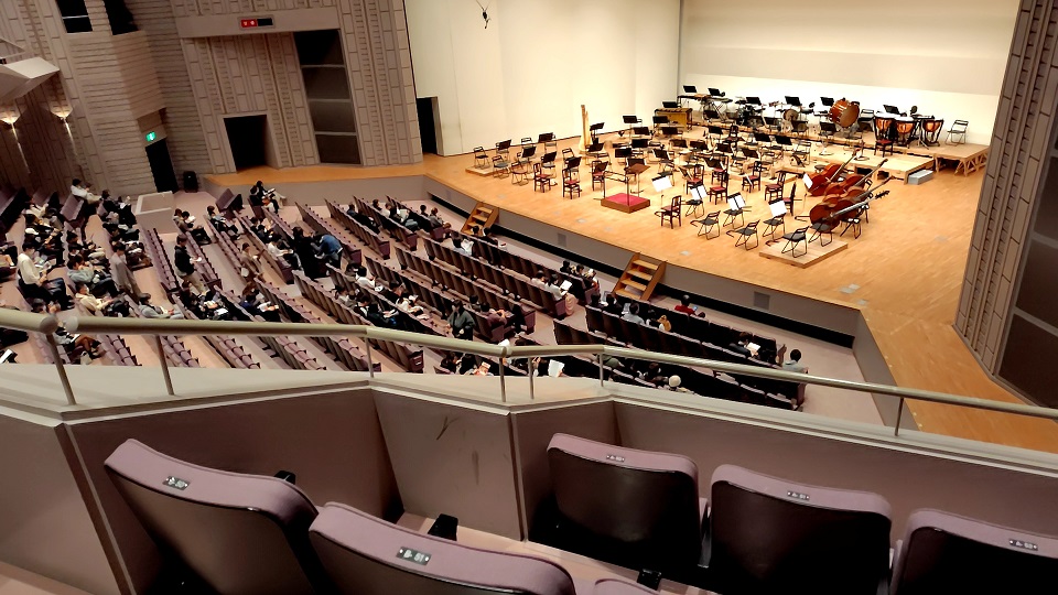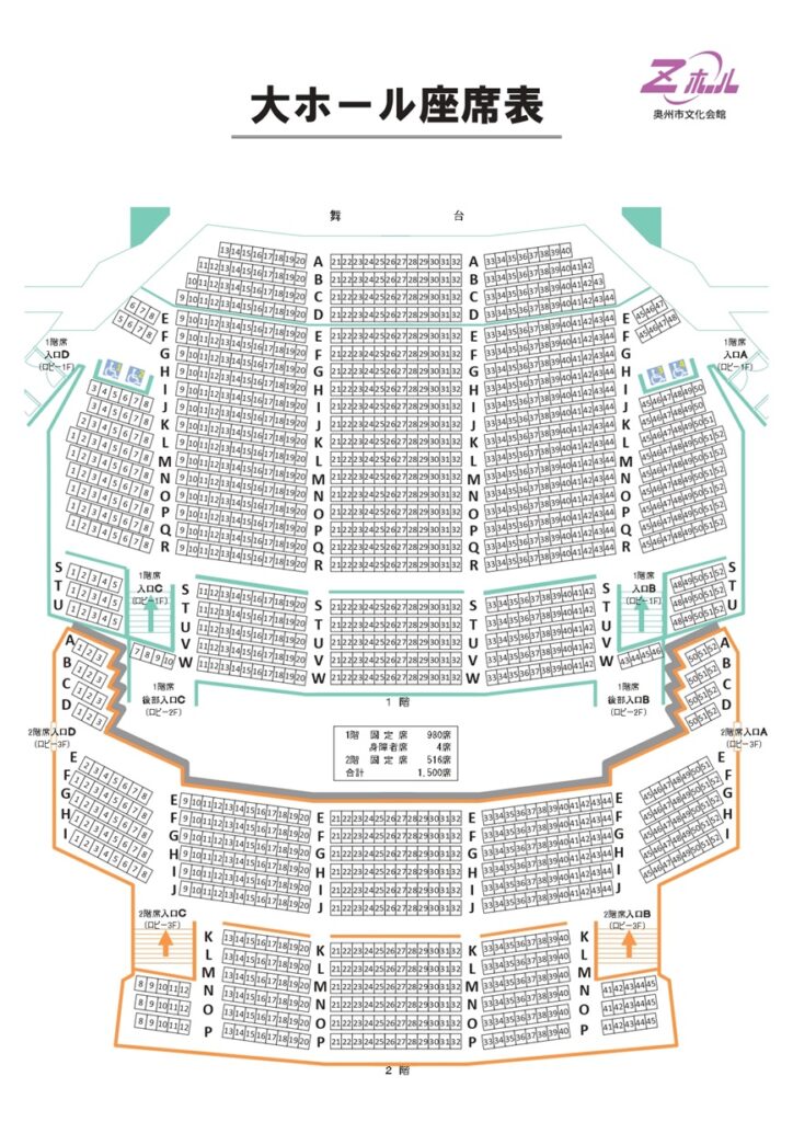 大ホールの総客席数はちょうど1,500席で、1階席と2階席の二層構造です。音響反射板やオーケストラピットが設置されており、コンサートやミュージカルはもちろん、演劇、舞踊のほか、多用途に対応できる舞台を持つホールです。