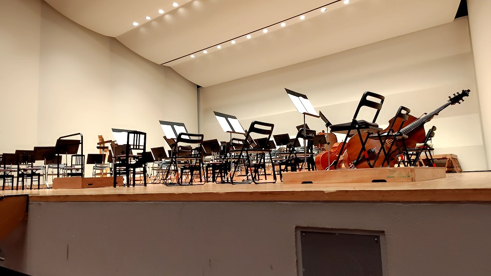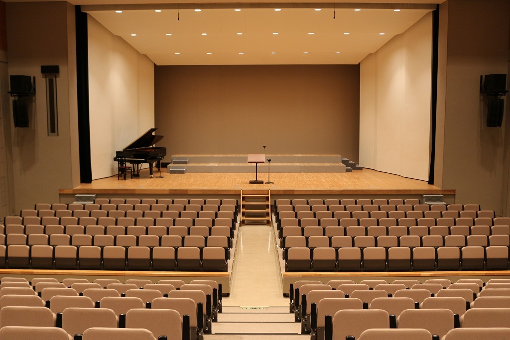 全席電動式収納客席になっており、ホールとしての機能はもちろん、客席を収納することにより、絵画や彫刻の展示スペースとしての使用等も可能です。