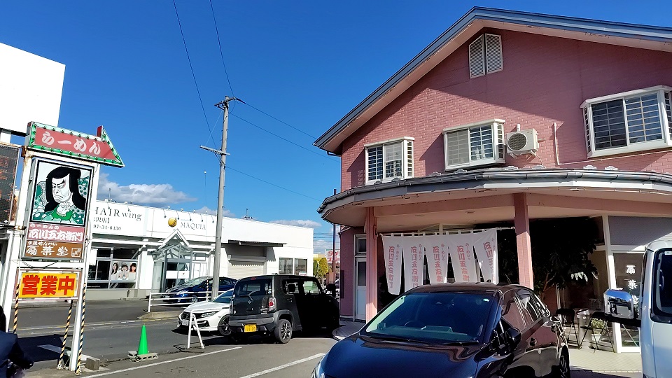 会場と道路(常盤通り)を挟んだ向かいにあるのが「らーめん 石川五右衛門」です。店名にもなっている「石川五右衛門らーめん」は少し辛めの醤油ラーメンという感じで、町中華らしい飽きのこない味でした。