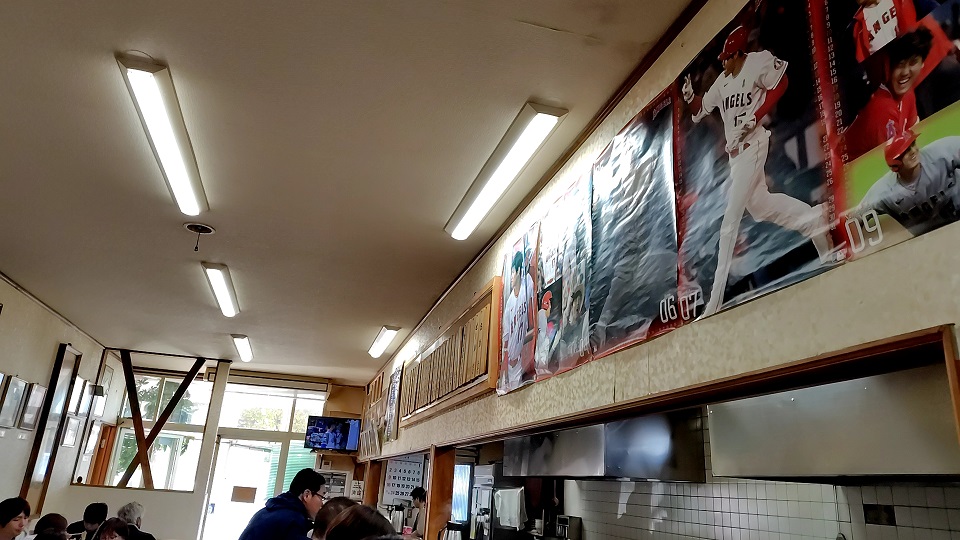 店内はカウンター席とテーブル席が半々ずつという感じ。地元出身の大谷翔平選手のポスターが飾られていました。