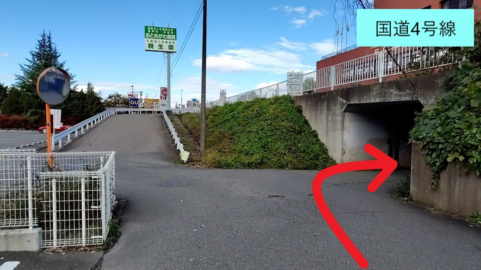 国道4号線の近くまで来たら、右側にあるアンダーパスの方に進みます。