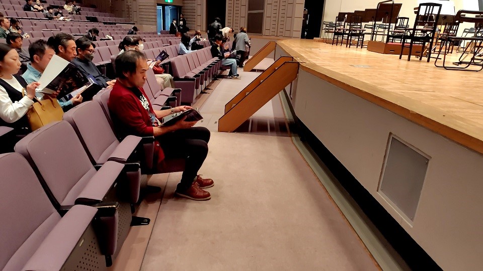 中ホールの総客席数は504席で、A列からT列までの20列あります。ワンスロープ構造で、途中、G列(7列目)とH列(8列目)の間に中央通路が設置されているほか、最後列付近のR列(18列目)とS列(19列目)の間にも通路が設置されています。