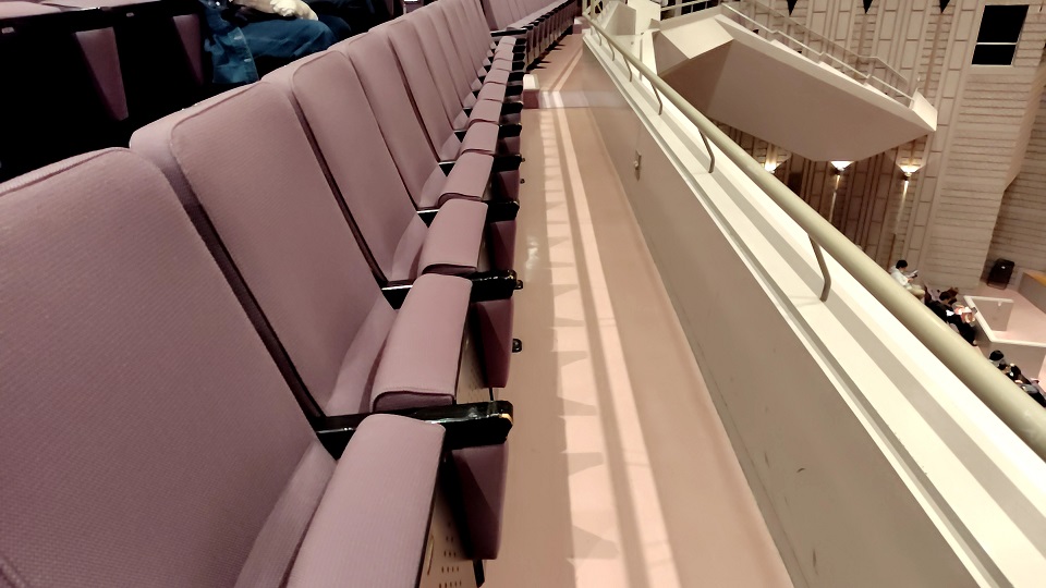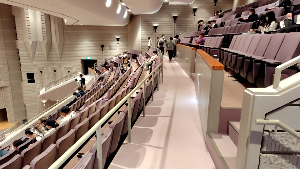 座席の傾斜は1階席に比べ段差が付き、最前から後方まで均等な強めの傾斜になっています。