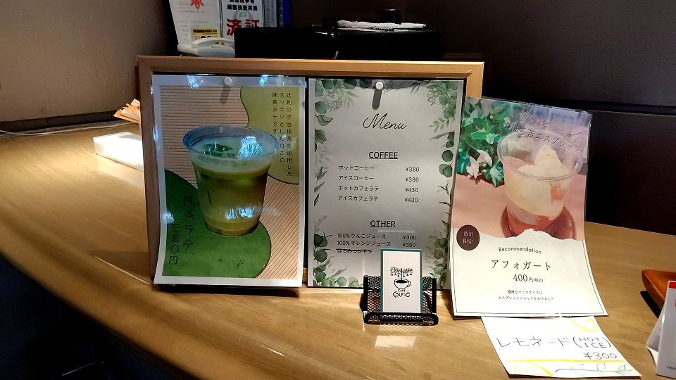 ドリンクメニュー。価格は300~400円台で注文できます。