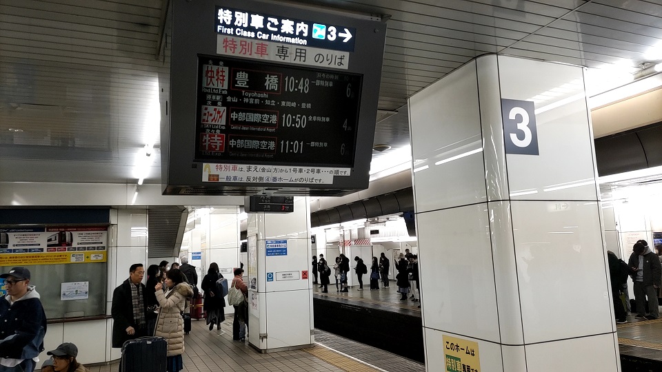 今回は最も停車駅の少ない快速特急「豊橋」行きの指定席車両に乗車しました。