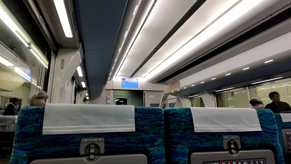 指定席車内です。日曜の昼間でしたが、閑散期で座席指定料金は300円でした。