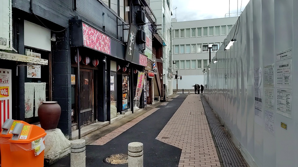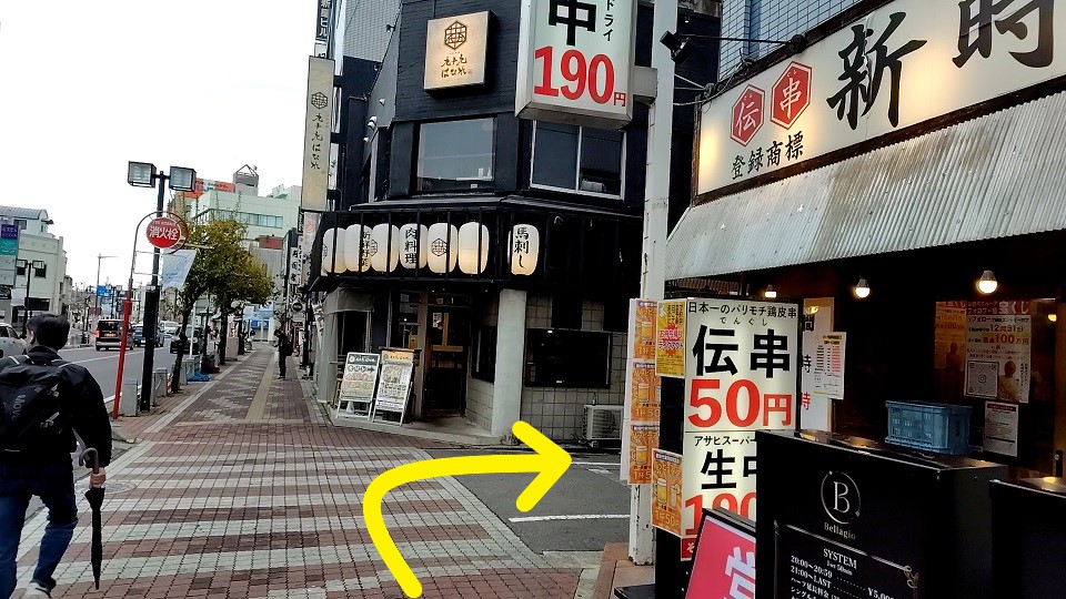 その先の飲み屋「新時代」東岡崎駅前店の角を右に曲がります。