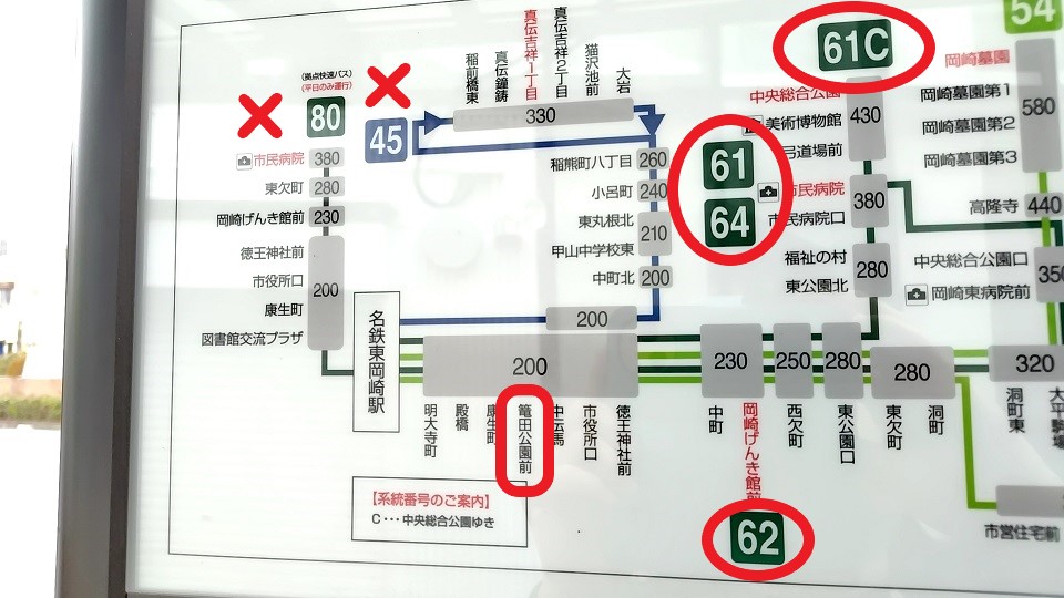 東岡崎駅からのバスルート