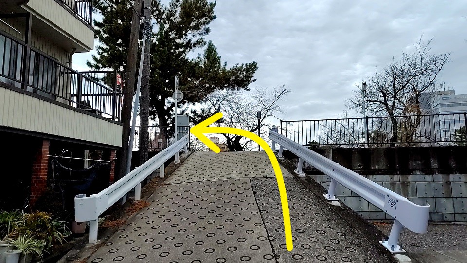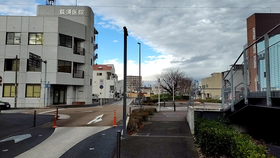 公園を抜けたところにある交差点を直進しましょう。