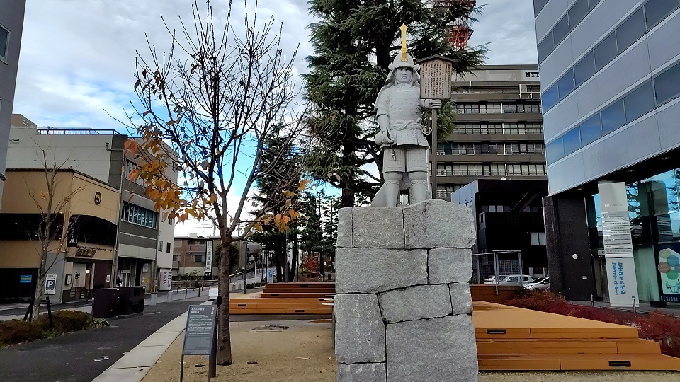 緑道内には徳川家臣の銅像が建っています。こちらは「本多忠勝(ほんだただかつ)」像です。