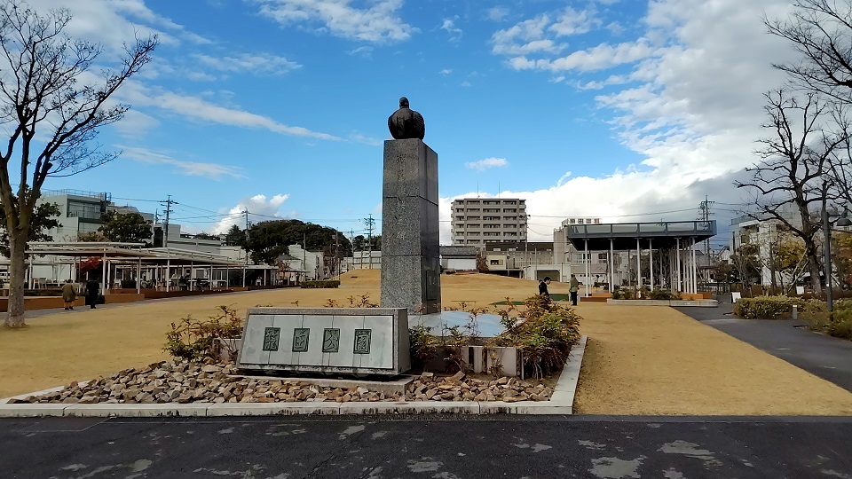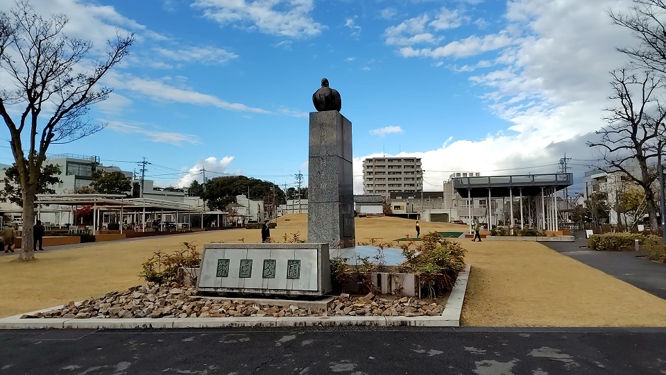 名鉄東岡崎駅北口「家康広場」にある徳川家康像