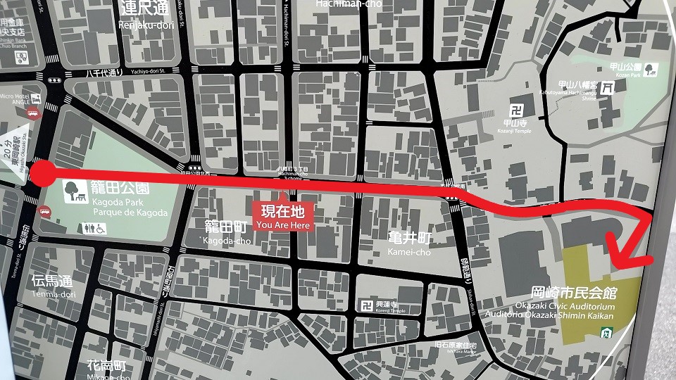 東岡崎駅からの徒歩ルート