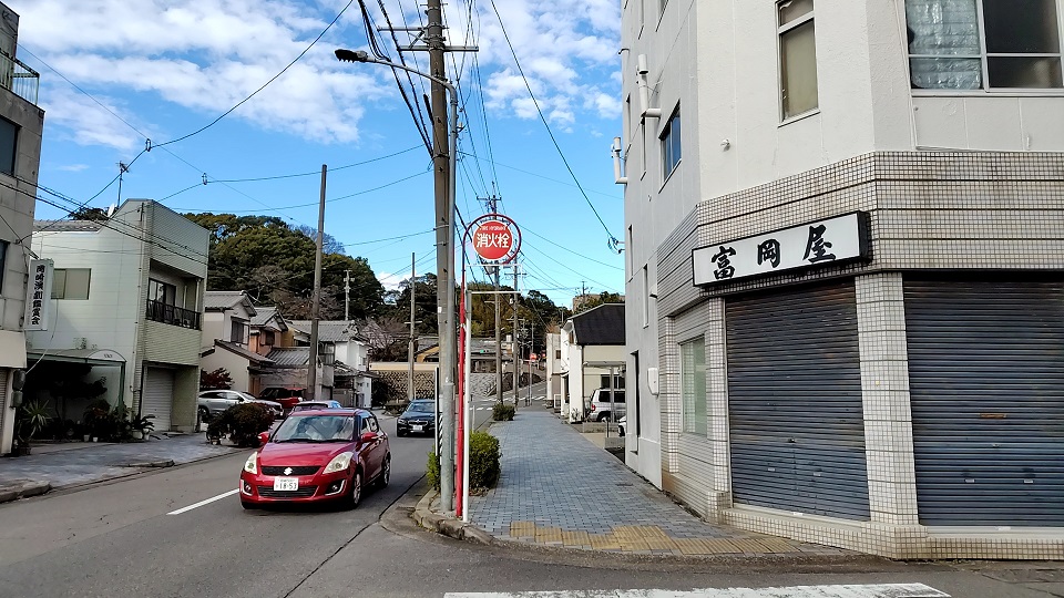 師範通りとの「市民会館南」交差点まで来た所から、少し上り坂になります。