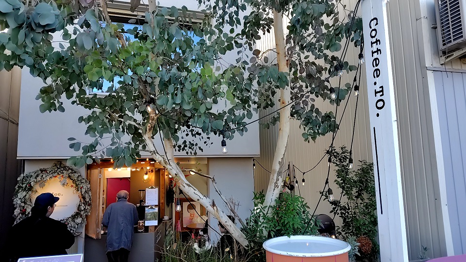公園のそばにカフェもあり、テイクアウトで園内のベンチやテーブル飲みながらくつろぐことができます。