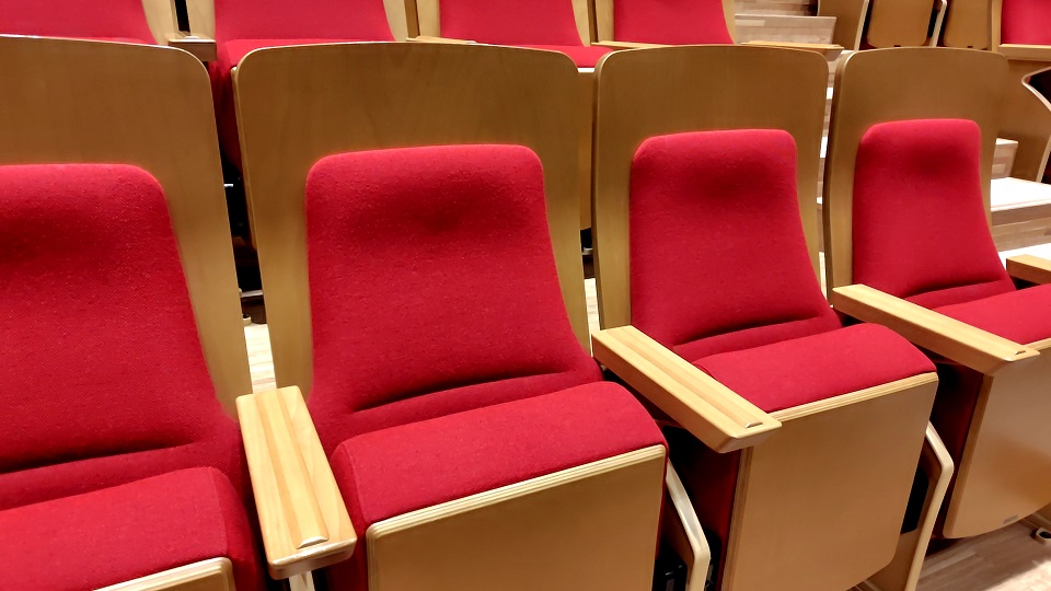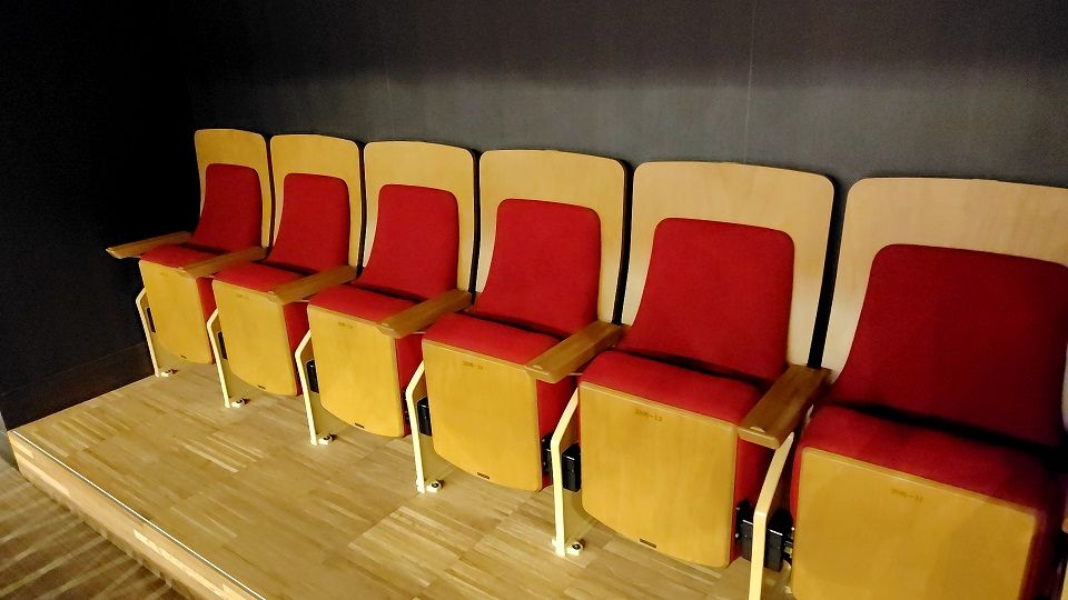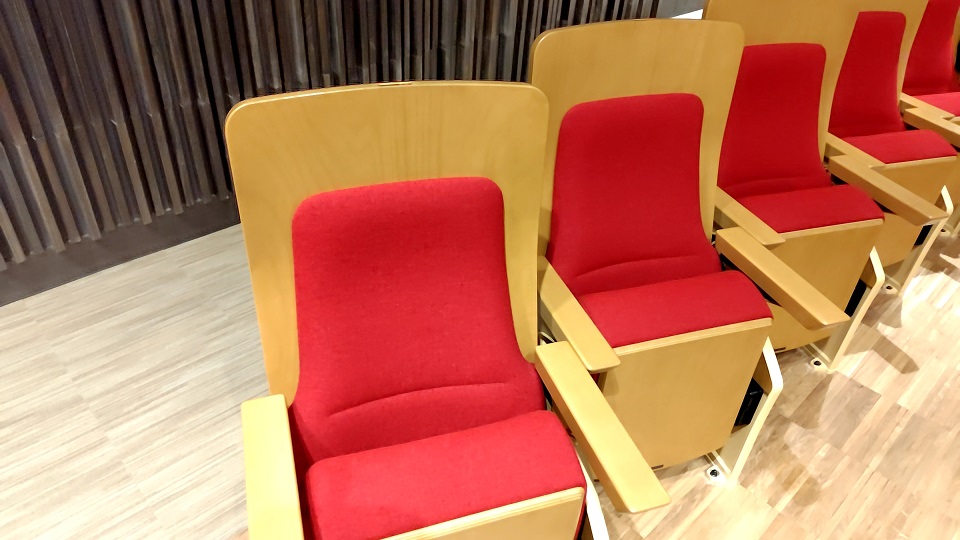 1階席後方(20列以降)と2階バルコニー席(L席・R席)は背もたれの基礎の部分が若干長めのハイバック仕様になっています。