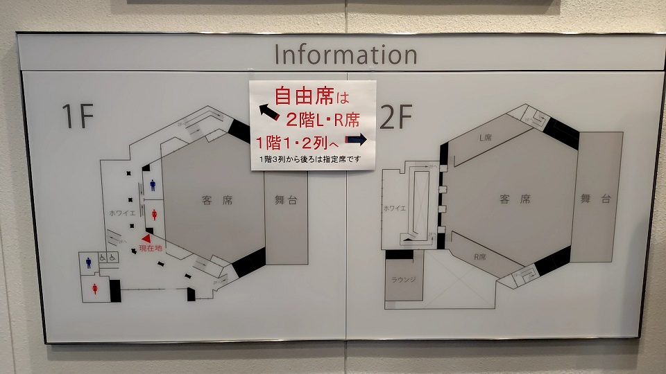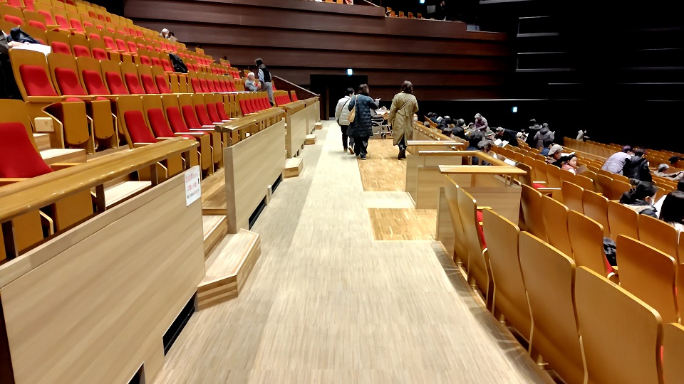 実質のバルコニー席であり、やはり視界や音響の面を考えると、1階席の方が聴きやすいのではないかと思います。実際今回訪れた公演では、1階席の最前から3列と2階L・R席は自由席扱いで、それ以外の席が指定席として販売されていました。