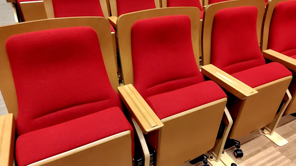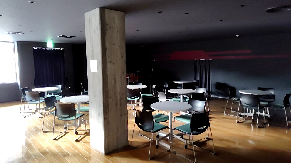 内部は舞台と客席フロアで構成されており、キャパは椅子のみの場合は最大で300席、電動椅子と移動椅子の組合せの場合、259席で使用することが可能です。座席は最大で15列ほど並べる形になります。