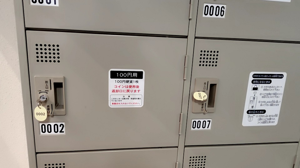 コインロッカーはトイレの横に設置されています。