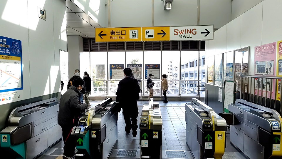 バスを利用する場合は、東出口から改札を出ましょう。